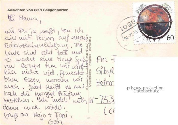 74049050 alte Postkarte Seligenporten Ortsansichten Kirche Pferdekutsche Reitplatz Reitgruppe postalisch gelaufen Erhaltung siehe scans [FriedD77] KatCode: 11110009373156