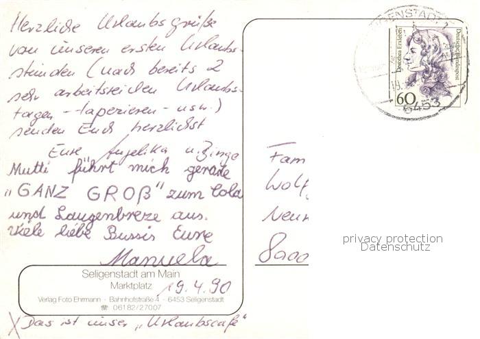 73867854 alte Postkarte Seligenstadt Hessen Marktplatz postalisch gelaufen Erhaltung siehe scans [WerneD78] KatCode: 11110006438013