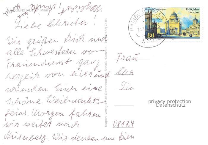 74099825 alte Postkarte Seligenstadt Offenbach Hessen Wendelinus Kapelle Altstadt Marktplatz Rathaus Einhardhaus Einhard Basilika Wasserburg Alter Wehrturm postalisch gelaufen Erhaltung siehe scans [WerneD78] KatCode: 11110006438013