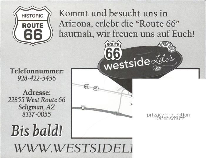 72581535 old postcard Seligman Arizona Restaurant Westside postalisch gelaufen Werbekarte (keine Postkarte) Erhaltung siehe scans [AndreD76] KatCode: 14140030000000