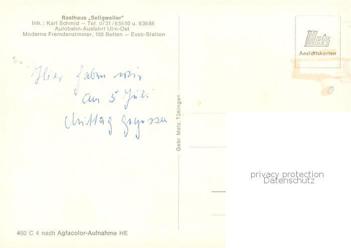 73834713 Seligweiler Rasthaus Seligweiler Autobahn Ausfahrt Ulm Ost postalisch nicht gelaufen Erhaltung siehe scans [WerneD78] KatCode: 11110008421000