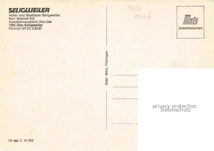 74050056 Seligweiler Ulm Donau Hotel Rasthaus Seligweiler postalisch nicht gelaufen Erhaltung siehe scans [WerneD78] KatCode: 11110008421000
