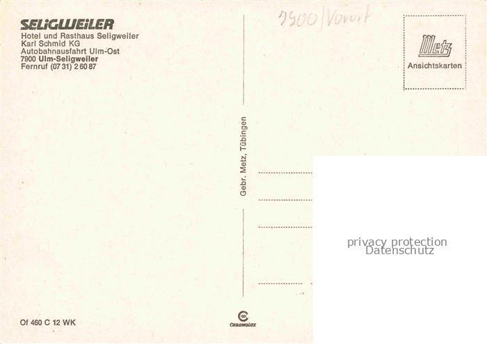 74050025 Seligweiler Ulm Donau Rasthaus Hotel Seligweiler Gastraeume Zimmer Rezeption Verkaufraum postalisch nicht gelaufen Erhaltung siehe scans [WerneD78] KatCode: 11110008421000