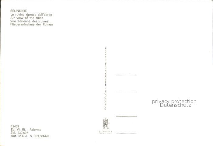 Selinunte Archaeologische Fundstaette Ruinen Fliegeraufnahme postalisch nicht gelaufen Erhaltung siehe scans