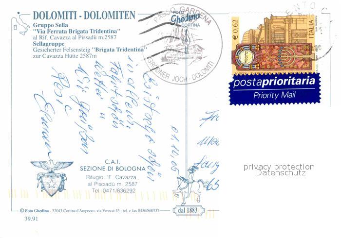 72885797 alte Postkarte Sellagruppe Via Ferrata Brigata Tridentina Gebirgspanorama Dolomiten postalisch gelaufen Erhaltung siehe scans [FriedD77] KatCode: 11390332070352