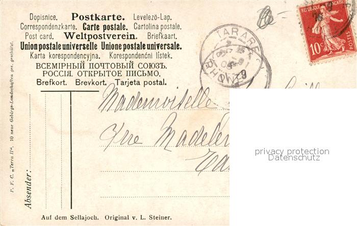 old postcard Sellajoch K?nstlerkarte L. Steiner postalisch gelaufen Erhaltung siehe scans [PaolaD17]