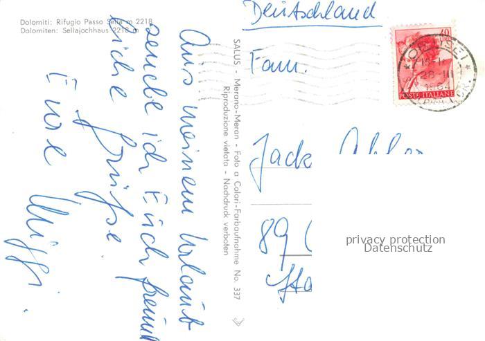 74079672 old postcard Sellajochhaus 2200m Selva di Val Gardena IT Panorama mit Sellatuermen postalisch gelaufen Erhaltung siehe scans [WerneD78] KatCode: 11240