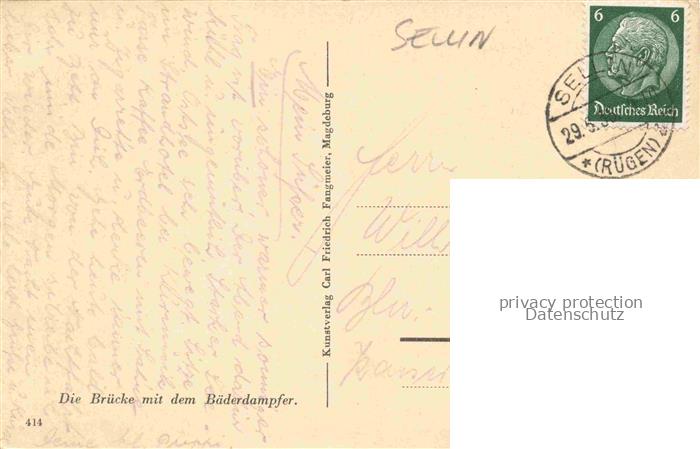 74037344 alte Postkarte SELLIN Ruegen Bruecke mit dem Baederdampfer Serie Aus deutschen Landen postalisch gelaufen Erhaltung siehe scans [FriedD77] KatCode: 11110013061038