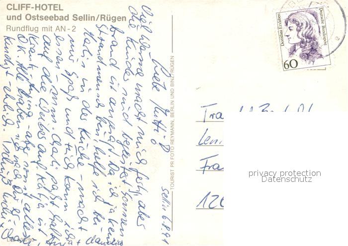 72954370 alte Postkarte Sellin Ruegen Cliff Hotel Rundflug mit AN 2 Fliegeraufnahme postalisch gelaufen Erhaltung siehe scans [FriedD77] KatCode: 11110013061038