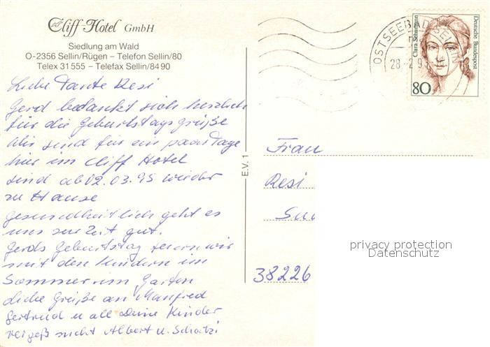 73722905 alte Postkarte Sellin Ruegen Cliff Hotel Speisesaal Appartement Hallenbad postalisch gelaufen Erhaltung siehe scans [WerneD78] KatCode: 11110013061038
