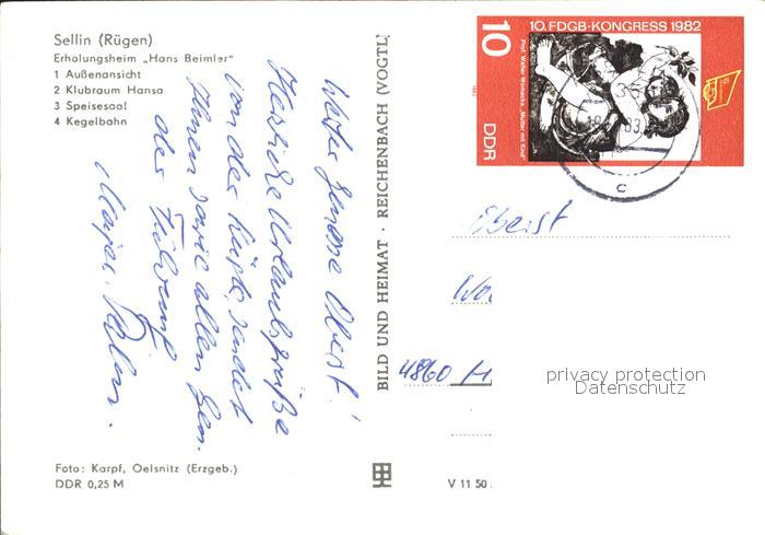 72358515 alte Postkarte Sellin Ruegen Erholungsheim Hans Beimler Klubraum Hansa Speisesaal Kegelbahn postalisch gelaufen Erhaltung siehe scans KatCode: 11110013061038