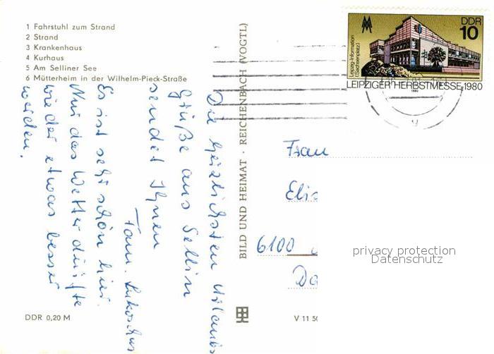 72632536 alte Postkarte Sellin Ruegen Fahrstuhl zum Strand Krankenhaus Kurhaus Selliner See Muetterheim Wilhelm Pieck Strasse postalisch gelaufen Erhaltung siehe scans [FriedD77] KatCode: 11110013061038
