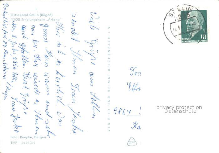72208525 alte Postkarte Sellin Ruegen FDGB Erholungsheim Arkona postalisch gelaufen Erhaltung siehe scans KatCode: 11110013061038