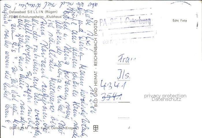 72467549 alte Postkarte Sellin Ruegen FDGB Erholungsheim Klubhaus postalisch gelaufen Erhaltung siehe scans KatCode: 11110013061038