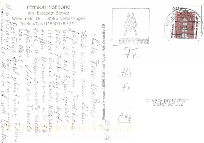 72860958 alte Postkarte Sellin Ruegen Pension Ingeborg postalisch gelaufen Erhaltung siehe scans [AndreD76] KatCode: 11110013061038
