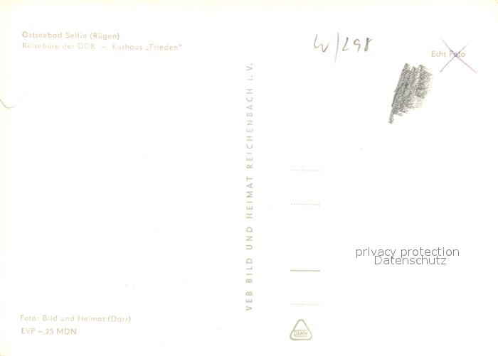 72986340 Sellin Ruegen Reisebuero der DDR Kurhaus Frieden postalisch nicht gelaufen Erhaltung siehe scans [FriedD77] KatCode: 11110013061038