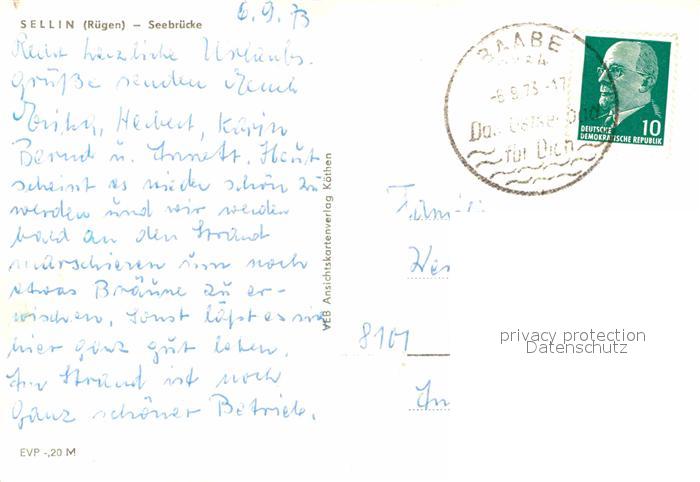 72644619 alte Postkarte Sellin Ruegen Seebruecke postalisch gelaufen Erhaltung siehe scans [AndreD76] KatCode: 11110013061038