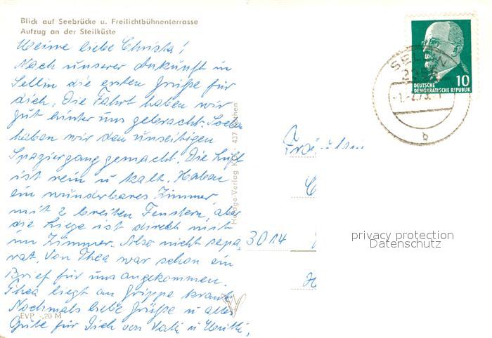 73137937 alte Postkarte Sellin Ruegen Seebruecke Freilichtbuehnenterrasse Hotel Frieden postalisch gelaufen Erhaltung siehe scans [NatalD47] KatCode: 11110013061038