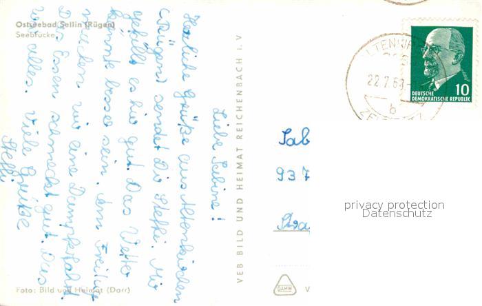 72728762 alte Postkarte Sellin Ruegen Seebruecke Strand postalisch gelaufen Erhaltung siehe scans [FriedD77] KatCode: 11110013061038