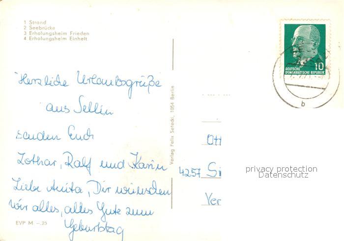 73044220 alte Postkarte Sellin Ruegen Strand Seebruecke Erholungsheime Frieden und Einheit postalisch gelaufen Erhaltung siehe scans [WerneD78] KatCode: 11110013061038