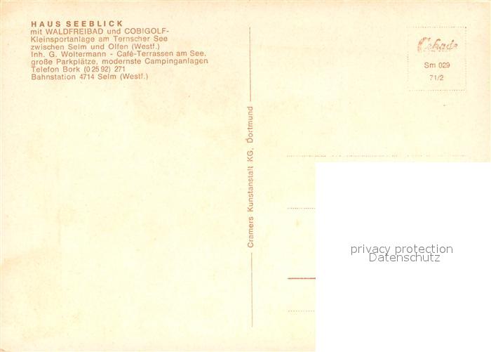 73711675 Selm Haus Seeblick mit Waldfreibad und Cobigolf Kleinsportanlage am Ternscher See postalisch nicht gelaufen Erhaltung siehe scans [WerneD78] KatCode: 11110005978032