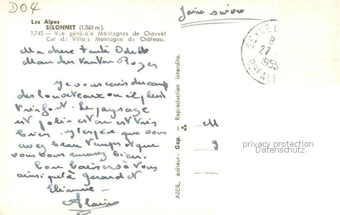 13563626 Selonnet Vue Generale Montagnes de Chauvet Col du Villars Montagne du Chateau KatCode 11170004304203