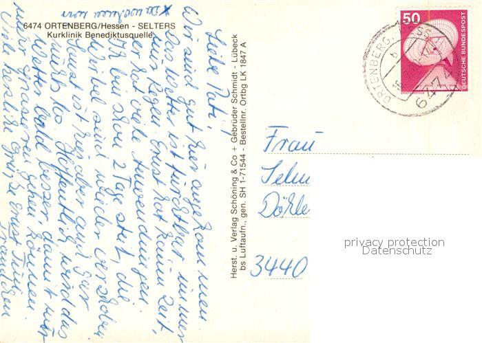 73578106 alte Postkarte Selters Ortenberg Kurklinik Benediktusquelle %fa postalisch gelaufen Erhaltung siehe scans [FriedD77] KatCode: 11110006440019