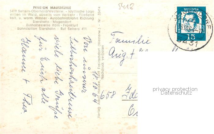 73830327 alte Postkarte Selters Westerwald Pension Mausmuehle Gaststube Panorama postalisch gelaufen Erhaltung siehe scans [FriedD77] KatCode: 11110007143067