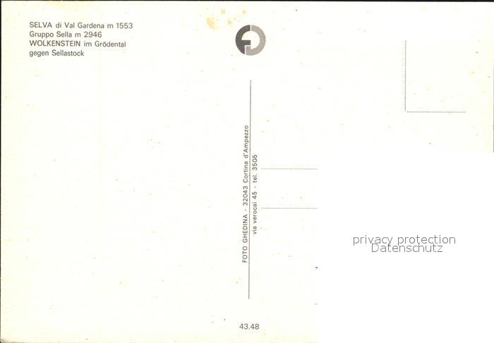 Selva dei Molini Wolkenstein im Groedental mit Sellastock postalisch nicht gelaufen Erhaltung siehe scans