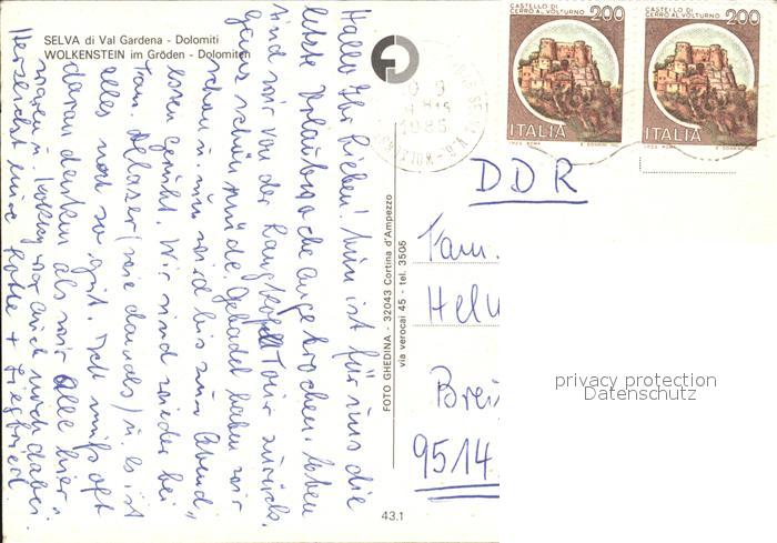 old postcard Selva Val Gardena Wolkenstein Tracht postalisch gelaufen Erhaltung siehe scans
