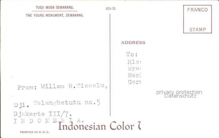 Semarang Young Monument postalisch nicht gelaufen Erhaltung siehe scans