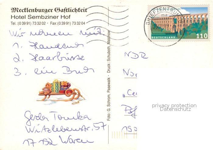 73652517 alte Postkarte Sembzin Hotel Sembziner Hof Gastraeume Gaestezimmer postalisch gelaufen Erhaltung siehe scans [WerneD78] KatCode: 11110013056030