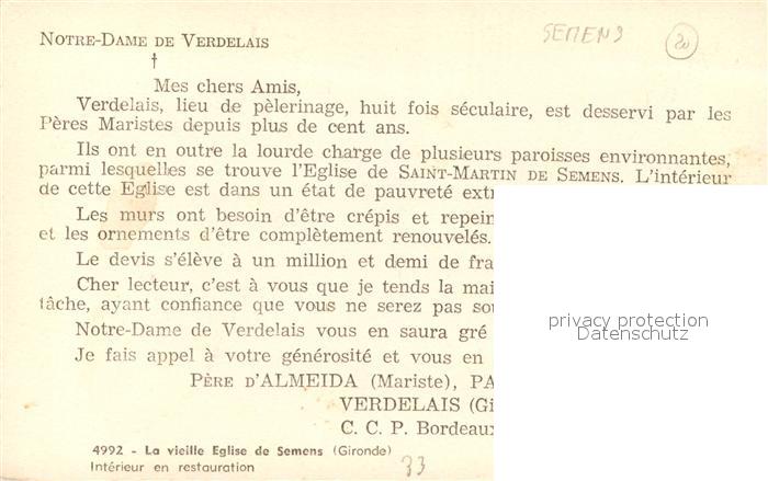 13503460 Semens Eglise de Semens Interieur en restauration postalisch nicht gelaufen Erhaltung siehe scans [WerneD78] KatCode: 11170033333510