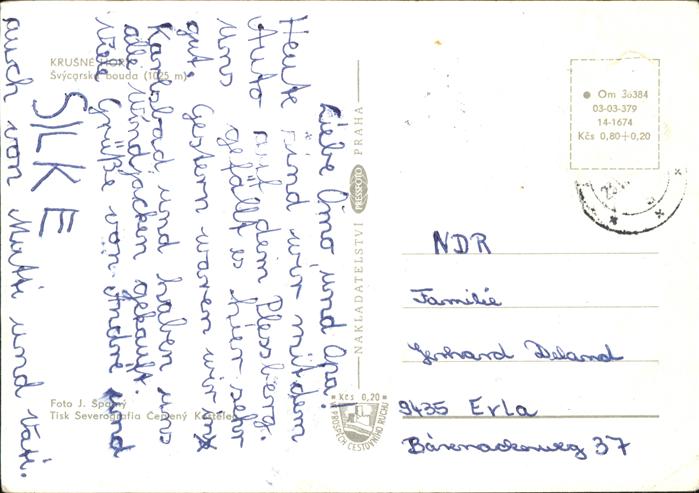 old postcard Semily Hotel Svycarska Bouda Krusney Hory Erzgebirge postalisch gelaufen Erhaltung siehe scans
