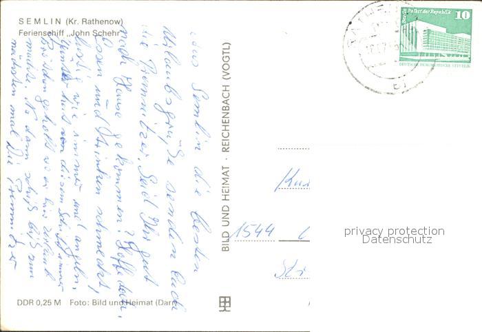 72033692 alte Postkarte Semlin Brandenburg Ferienschiff John Schehr postalisch gelaufen Erhaltung siehe scans KatCode: 11110012063252