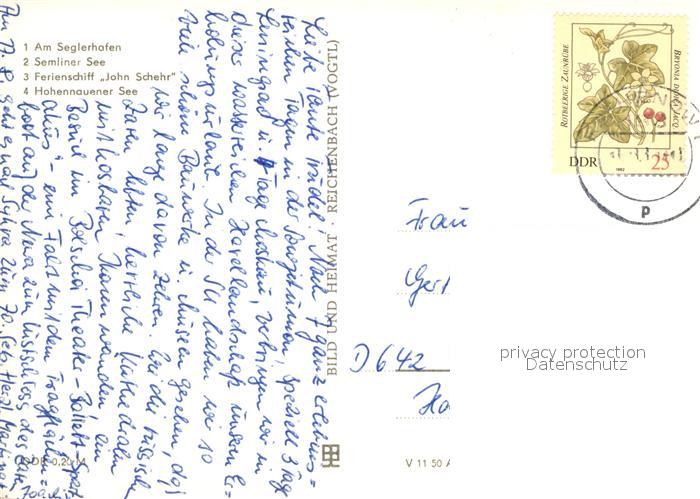 73001069 alte Postkarte Semlin Brandenburg Seglerhafen See Ferienschiff John Scher Hohenauer See postalisch gelaufen Erhaltung siehe scans [AndreD76] KatCode: 11110012063252
