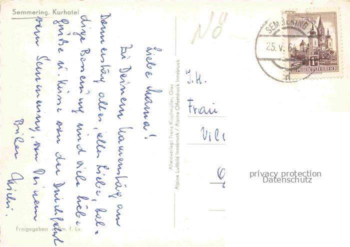 74155916 alte Postkarte Semmering Niederoesterreich AT Kurhotel Fliegeraufnahme postalisch gelaufen Erhaltung siehe scans [WerneD78] KatCode: 11390122031838