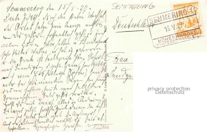 74122120 alte Postkarte Semmering Niederoesterreich AT Villenpartie an der Hochstrasse mit Hotel Panhans postalisch gelaufen Erhaltung siehe scans [FriedD77] KatCode: 11390122031838