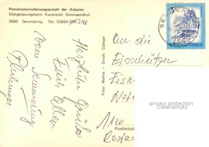 13234802 alte Postkarte Semmering Niederoesterreich Diaetgenesungsheim Kuranstalt Sonnwendhof Nachtaufnahme postalisch gelaufen Erhaltung siehe scans [FriedD77] KatCode: 11390122031838