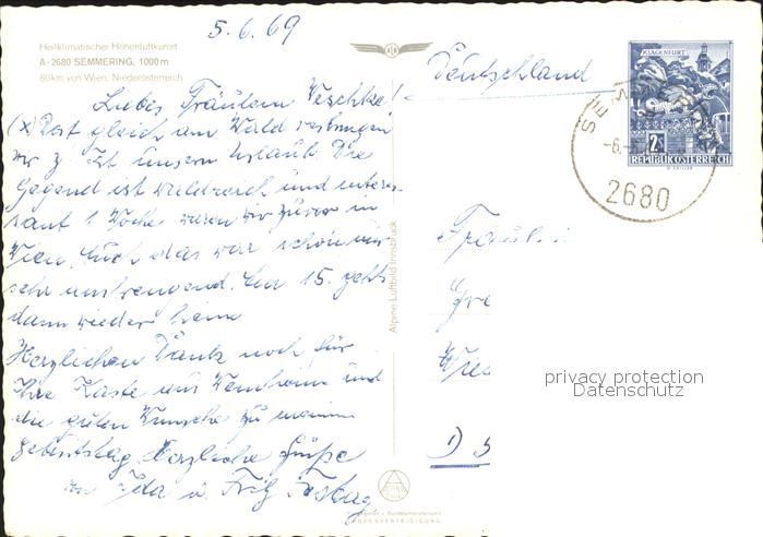 71860201 alte Postkarte Semmering Niederoesterreich Fliegeraufnahme postalisch gelaufen Erhaltung siehe scans KatCode: 11390122031838