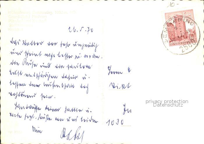 72229250 alte Postkarte Semmering Niederoesterreich Grand Hotel Panhans Pfarrhof Kircherl postalisch gelaufen Erhaltung siehe scans KatCode: 11390122031838