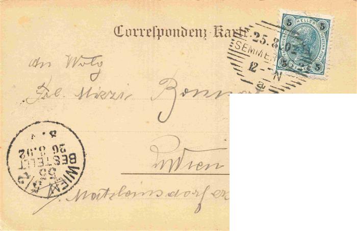 73973861 alte Postkarte Semmering Niederoesterreich Hotel Erzherzog Johann postalisch gelaufen Erhaltung siehe scans [WerneD78] KatCode: 11390122031838