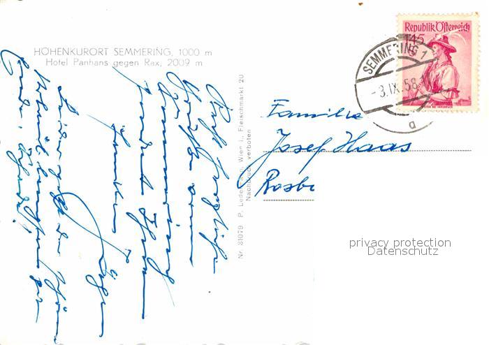42620148 alte Postkarte Semmering Niederoesterreich Hotel Panhans Rex postalisch gelaufen Erhaltung siehe scans [KathaD79] KatCode: 11390122031838