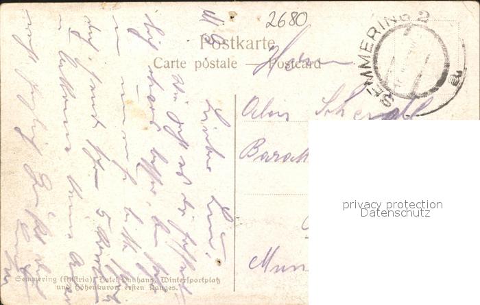 31740003 alte Postkarte Semmering Niederoesterreich Hotel Panhans Skifahrer Skifahren Kuenstler E. Kutzer postalisch gelaufen Feldpost Erhaltung siehe scans KatCode: 11390122031838