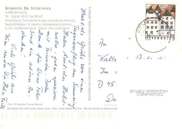 73209260 alte Postkarte Semmering Niederoesterreich Kurhotel Dr Stuehlinger Fliegeraufnahme postalisch gelaufen Erhaltung siehe scans [FriedD77] KatCode: 11390122031838