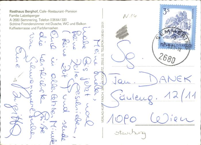 71420230 Semmering Niederoesterreich Rasthaus Bergof KatCode 11390122031838