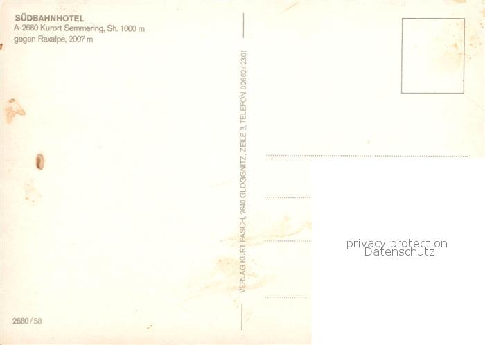 73008800 Semmering Niederoesterreich Suedbahnhotel mit Raxalpe postalisch nicht gelaufen Erhaltung siehe scans [WerneD78] KatCode: 11390122031838