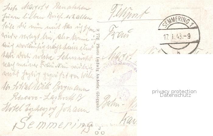 43173130 alte Postkarte Semmering Niederoesterreich Suedbahnhotel mit Raxalpe postalisch gelaufen Feldpost Erhaltung siehe scans [WerneD78] KatCode: 11390122031838