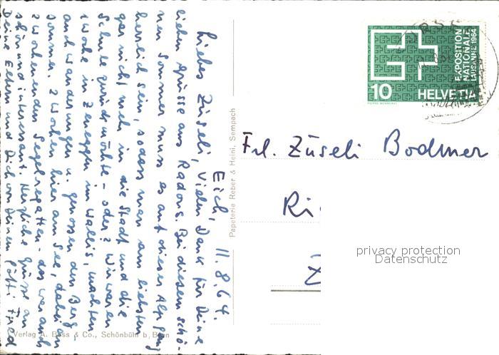 11648226 alte Postkarte Sempach LU Fliegeraufnahme postalisch gelaufen Erhaltung siehe scans KatCode: 11470120395956