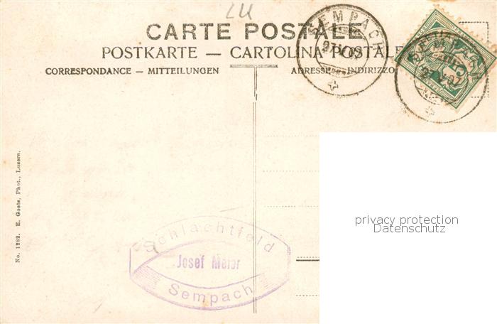13794508 alte Postkarte Sempach LU Winkelried-Denkmal u. Teilansicht postalisch gelaufen Erhaltung siehe scans [LiesaD40] KatCode: 11470120395956